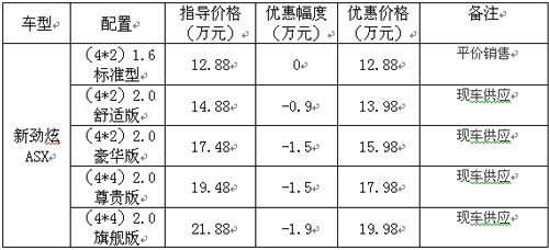 广汽三菱新劲炫车展“特惠风暴”最高降19000