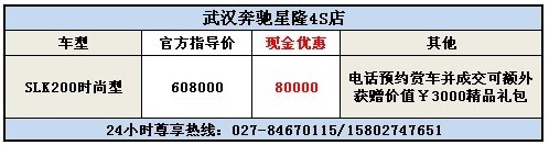 武汉奔驰SLK200现金优惠80000元