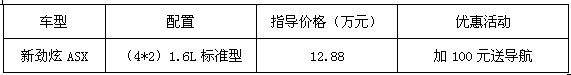 畅享城市生活,驾驶越野乐趣。 迎六月双节,广汽三菱新劲炫ASX端午佳节大优惠只需加100元即可获赠导航。还等什么,赶快来福菱竹叶山店挑选您的爱车吧! 优势一:节能经济环保。 新劲炫ASX配置的三菱MI