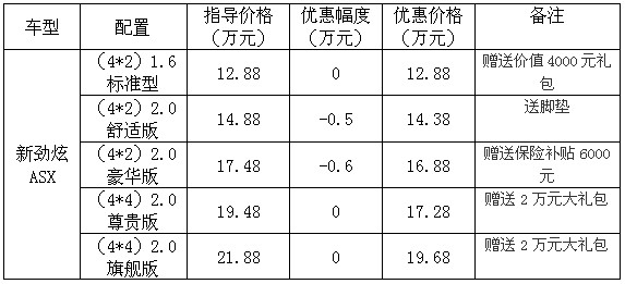 广汽三菱新劲炫 购车最高赠2万元“清爽大礼包”