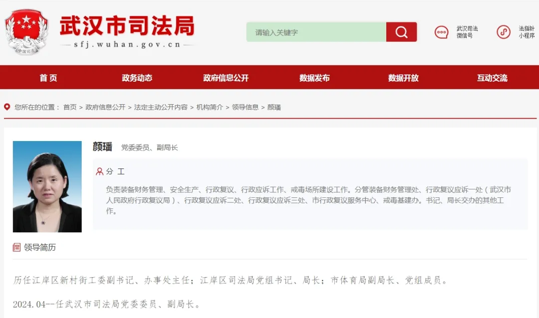 颜璠已履新武汉市司法局副局长