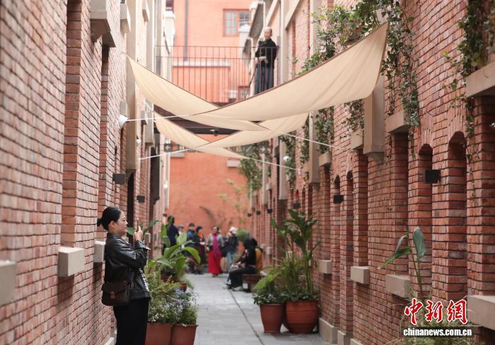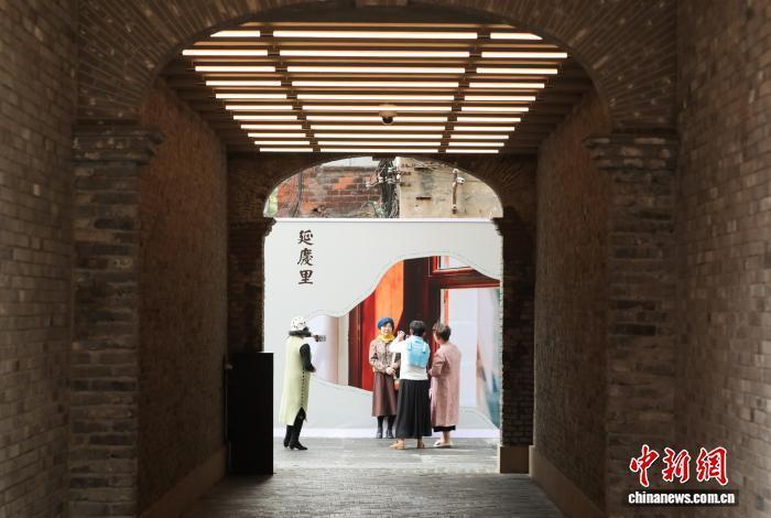 11月4日,湖北武汉,游客在延庆里观光游玩。延庆里位于武汉三阳路和胜利街交叉口,修建于1933年,是武汉的一处老里分。改造后的延庆里焕发出新生机,吸引了众多市民和游客前来观光游玩、打卡拍照。中新社记者 张畅 摄