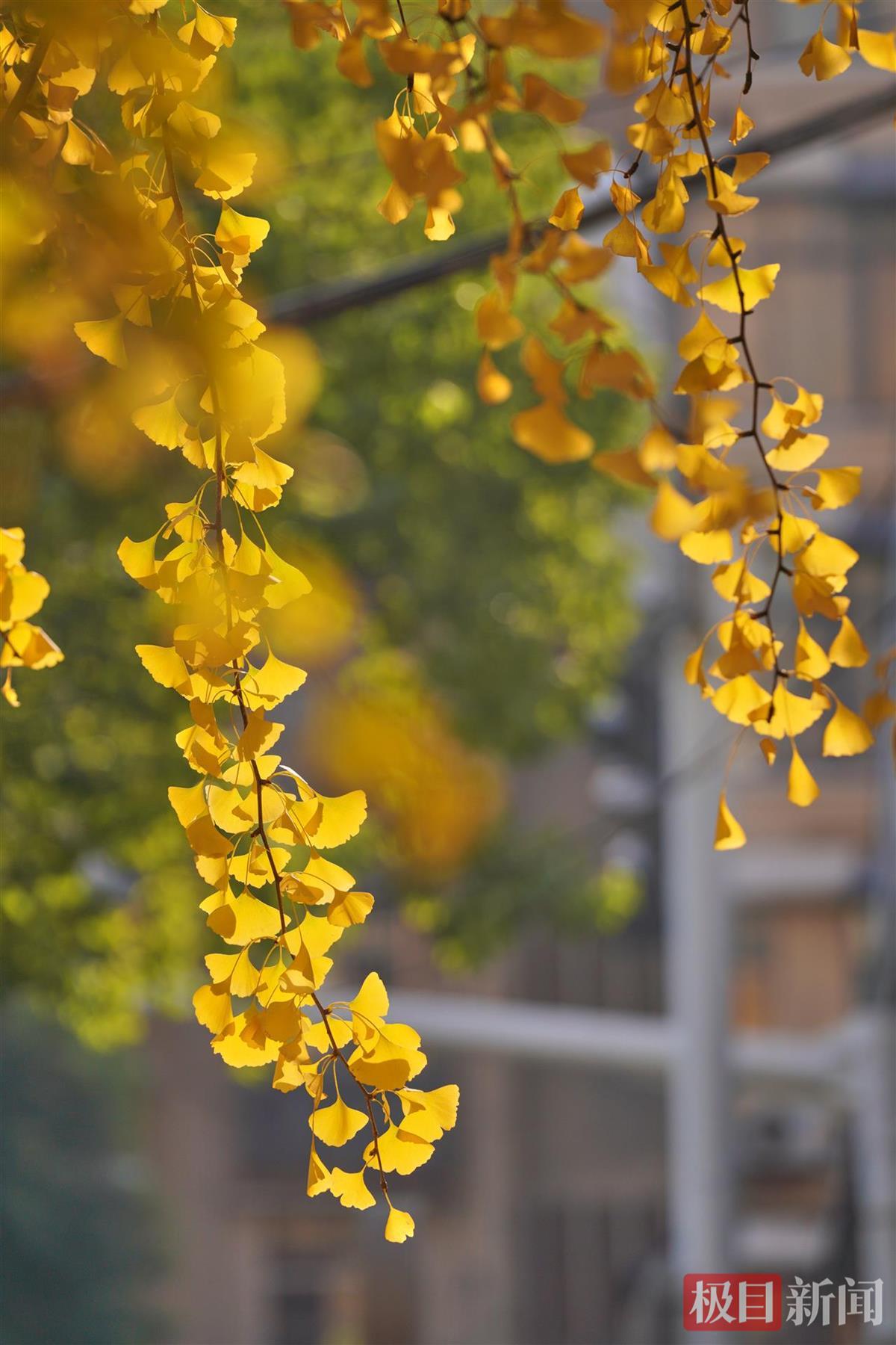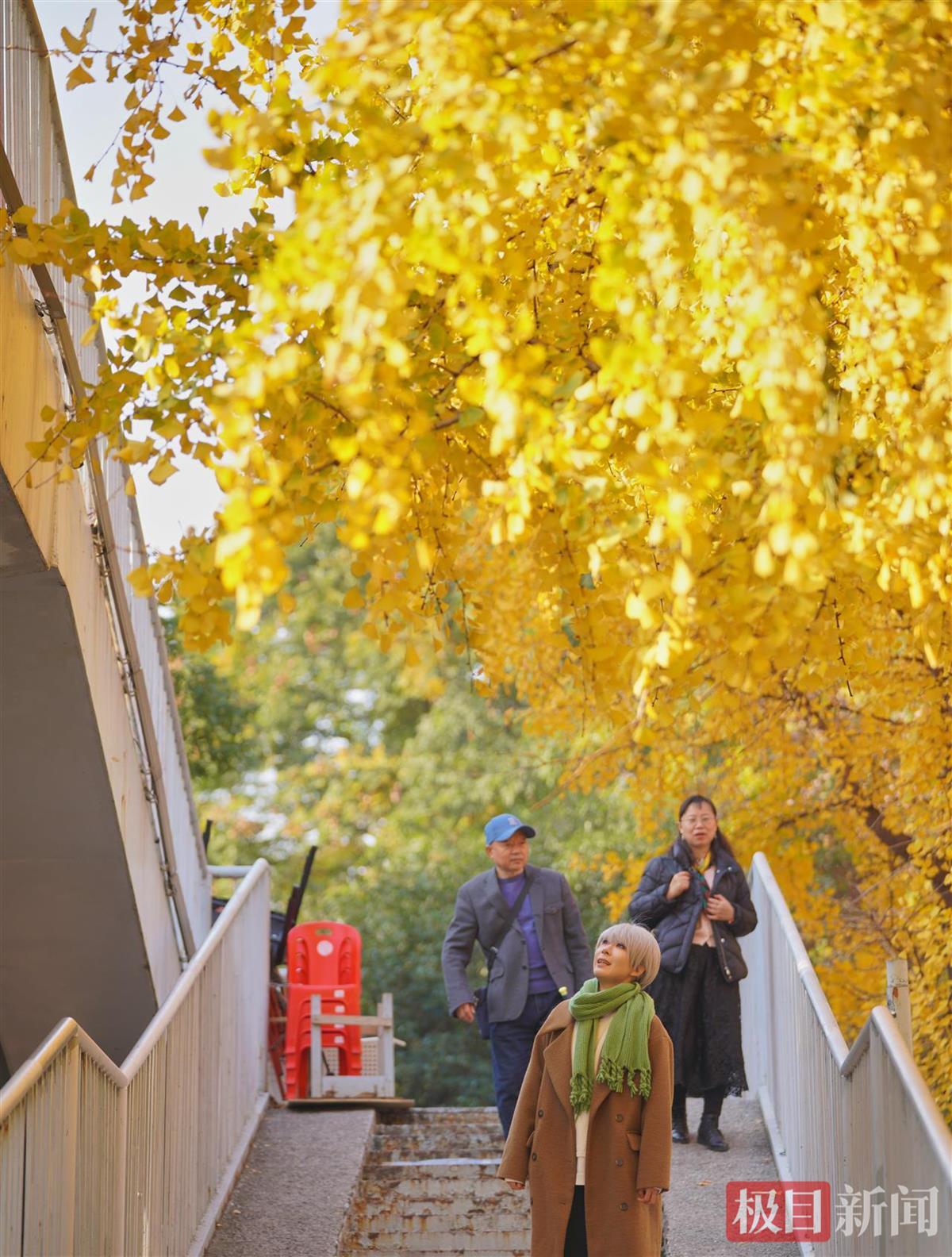 12月1日,武汉市江岸区江大路天桥旁的银杏树披上了金黄色的外衣。记者在现场看到,天桥上下台阶处,几株茂盛的银杏树垂下层层叠叠的枝叶,与天桥相映成趣,构成一道独特的冬日景观。不少市民游客来此打卡拍照。