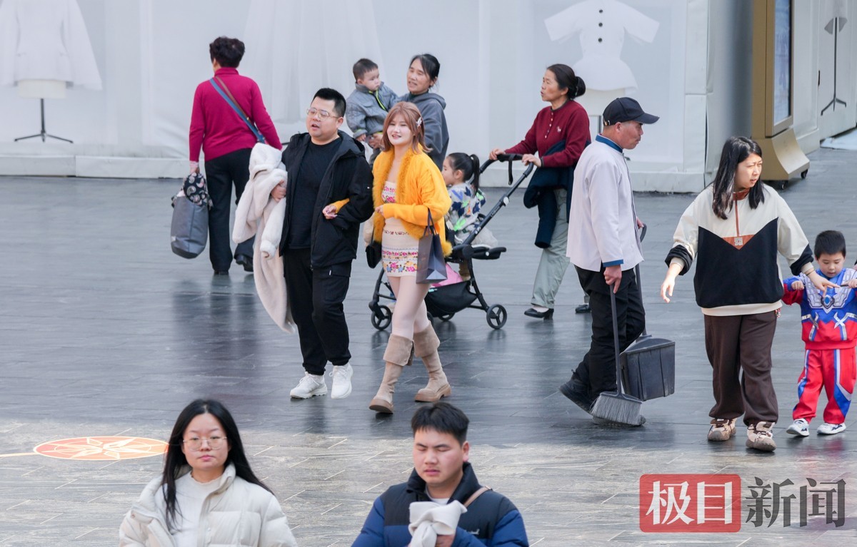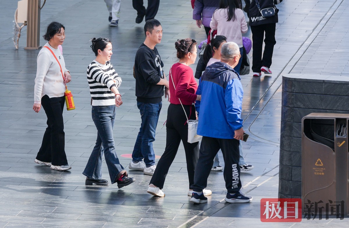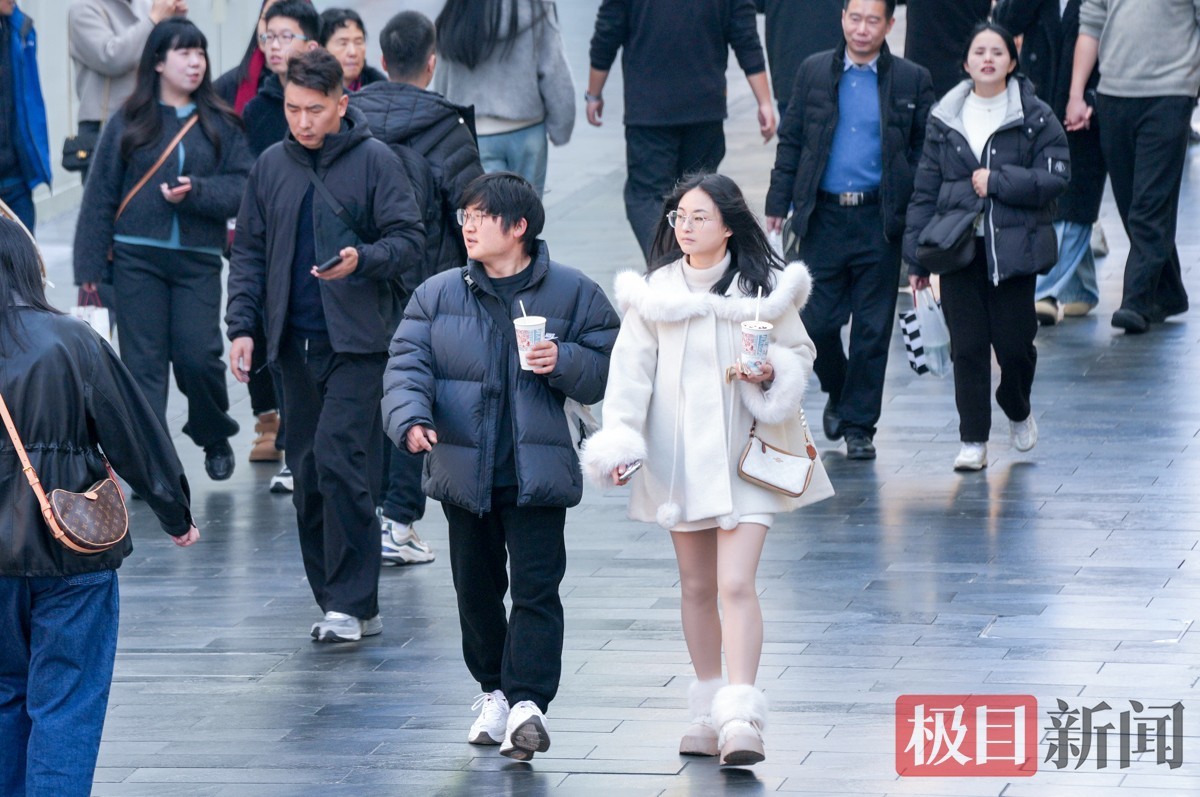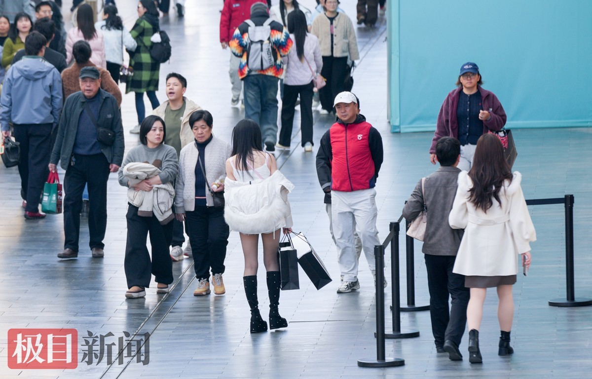 当天下午2时许,极目新闻记者在武昌楚河汉街看到,逛街购物的市民络绎不绝。大家纷纷褪去厚重冬衣,穿上衬衫、薄外套等春装,不少人边走边减衣,有人甚至只穿短袖,提前感受春日氛围。明媚阳光与轻快穿搭相映,街头洋溢着轻松惬意的气息。