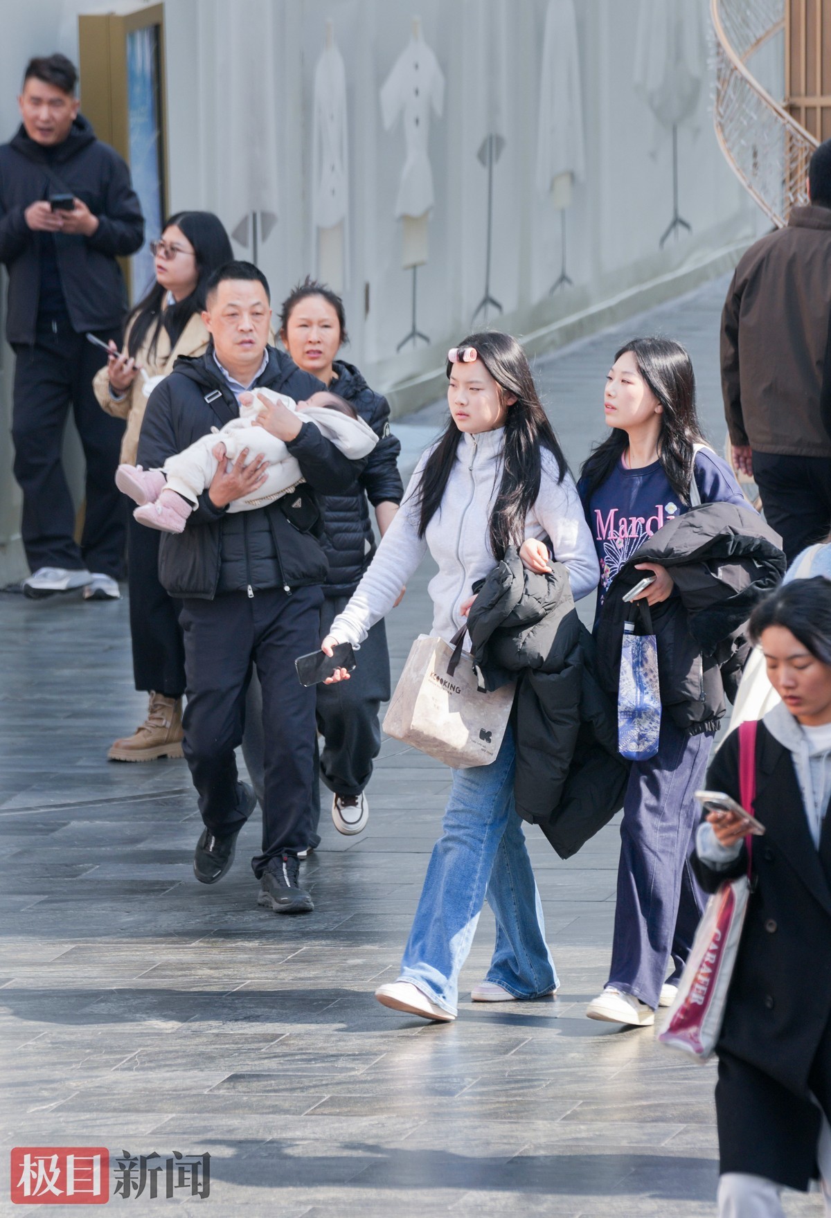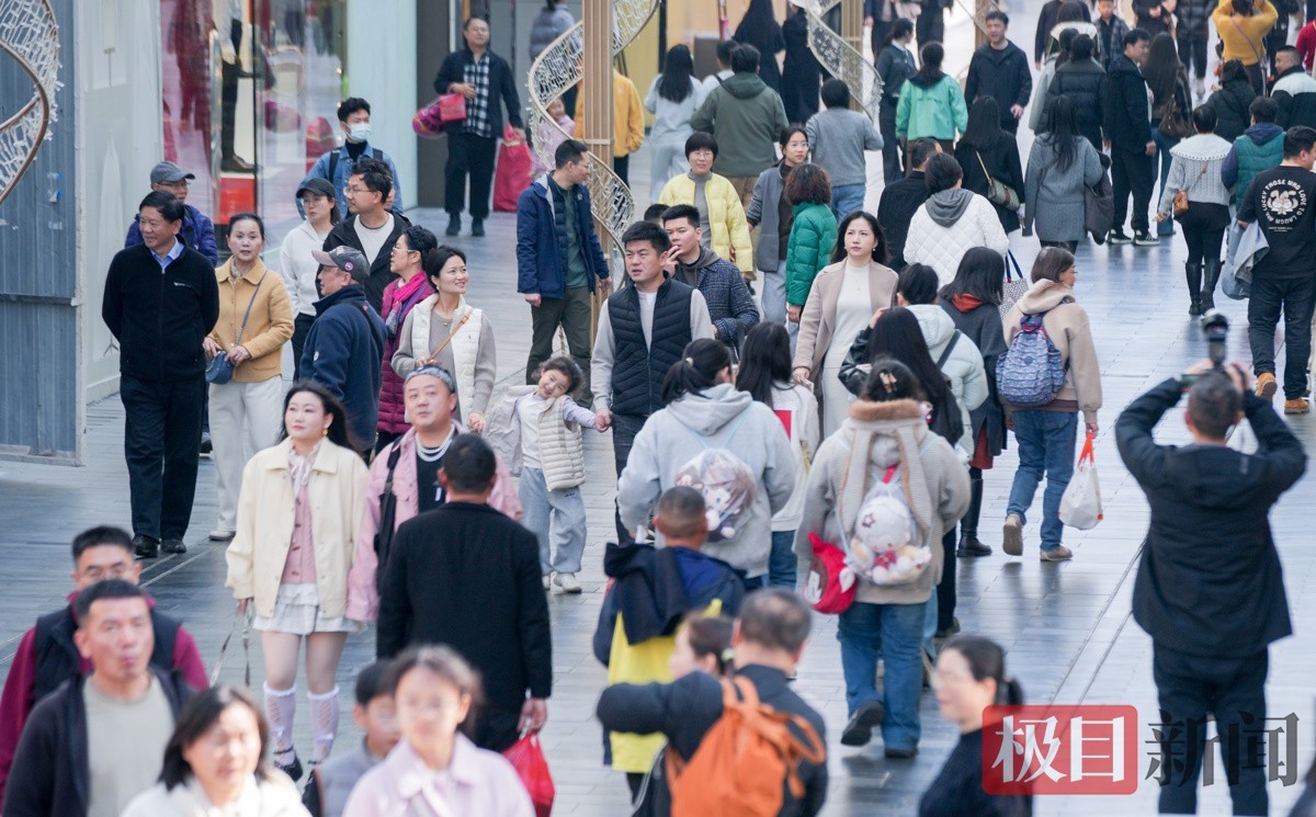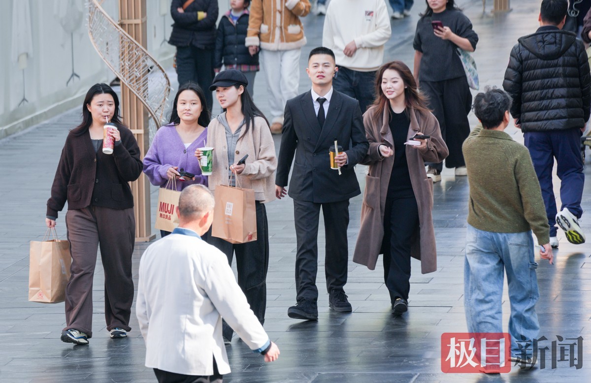 当天下午2时许,极目新闻记者在武昌楚河汉街看到,逛街购物的市民络绎不绝。大家纷纷褪去厚重冬衣,穿上衬衫、薄外套等春装,不少人边走边减衣,有人甚至只穿短袖,提前感受春日氛围。明媚阳光与轻快穿搭相映,街头洋溢着轻松惬意的气息。