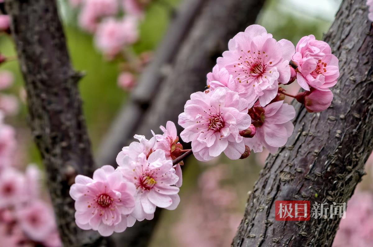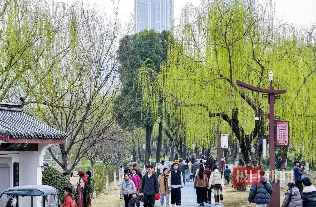 当日下午,极目新闻记者在公园内看到,处处洋溢着盎然春意。玉兰、早樱竞相绽放,粉白相间的花朵缀满枝头,清新雅致;人工湖沿岸,垂柳抽出嫩绿新芽,随风轻拂,勾勒出柔美的春日轮廓。