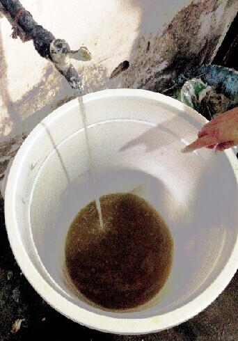 记者走访了多户村民家,打开水龙头,流出的都是黄水。一位村民告诉记者,许多村民接受不了这样的黄水,有人在家里自建过滤池,有人干脆挖井取水。