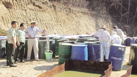 突发污染事件引起了蕲春县委、县政府高度重视,配合省、市环保专家联合组成专案组展开处置。经环保专家现场勘查,铁桶里装的都是含有氯铂酸的有毒化工废料,共有418桶。其中有106桶发生泄漏,致周边树木枯死,生态环境破坏严重。