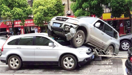 据附近居民介绍,事发时本田车正在路口等红绿灯,这辆三菱车突然从逆向车道转急弯撞了过来,撞倒隔离护栏后,又顺势骑到了本田车上,汽车版“叠罗汉”引得不少路人围观。