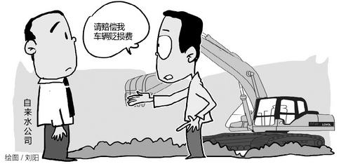 原标题:水管爆裂淹了挖土机 修复赔钱还嫌不够