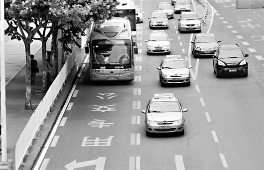 一名十多年驾龄的老公交司机说“在我的记忆中,公交专用道就从来没专过,我们总是为公交车难进站恼火。”