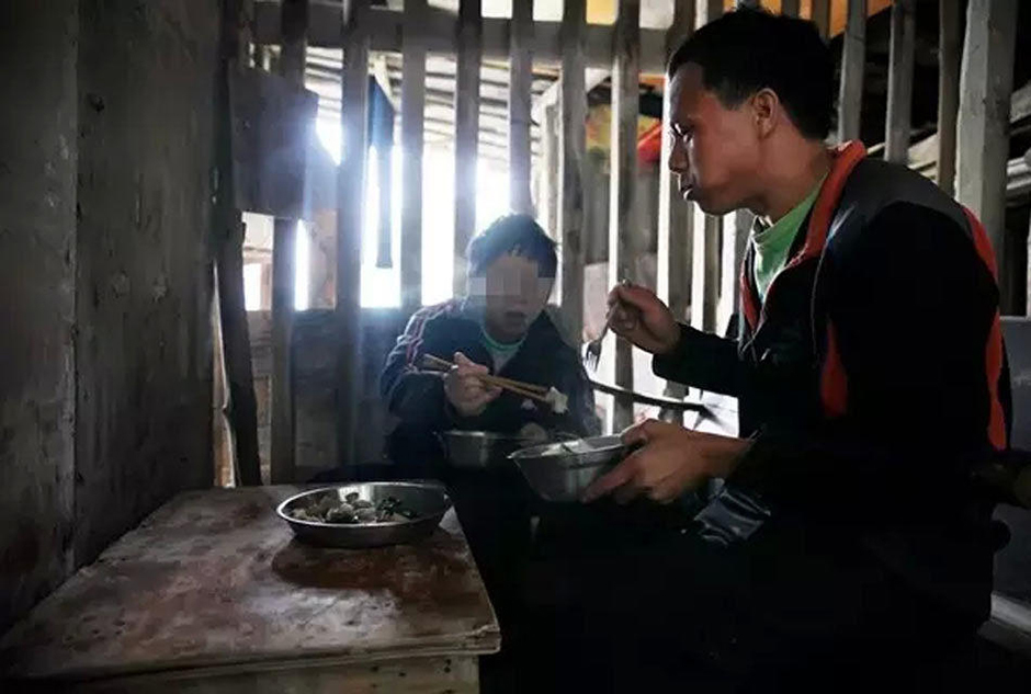 天气越来越冷,黎也开始拿起蛇皮纸给妻子的笼子围了一圈,但下午种菜回来,发现被撕烂,笼子里的妻子在直打哆嗦。他说,自己看在眼里,心里却是无奈。而这个家更无奈的是,黎金次的哥哥,情况和他几乎一样,找不到老婆,别人也是介绍了一个“傻傻”的女子给他。