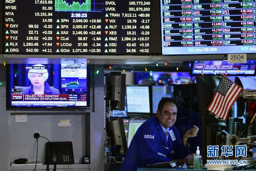 美联储主席耶伦宣布加息 纽约股市三大股指上涨