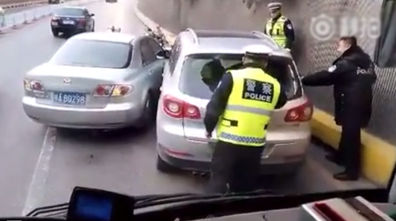 男子驾车带倒交警疯狂逃逸 交警征用市民私家车追击