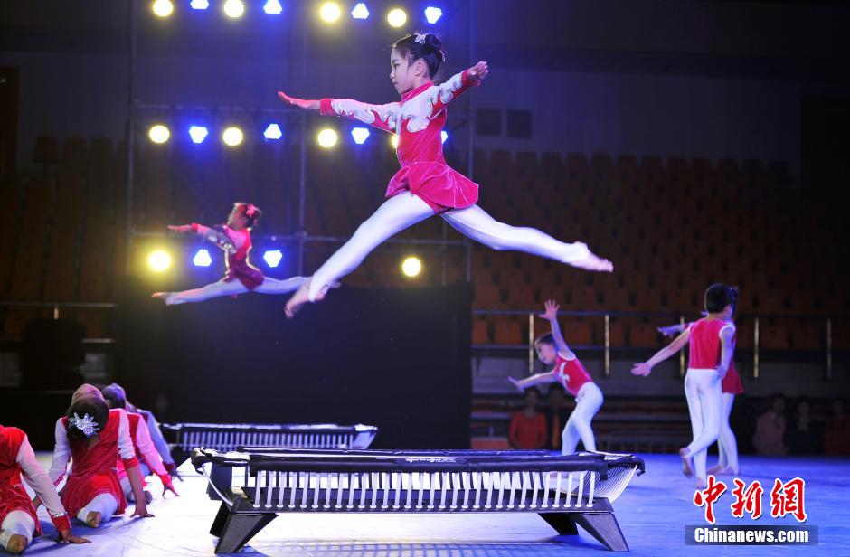 12月18日下午,由江西省体育局等多部门联合主办的2015年江西“天使”健身大联赛在江西南昌闭幕。闭幕式上,由十多名孩童带来的《小小快乐运动员》幼儿基本体操精彩纷呈,特别是现场展示的幼儿蹦床、倒立、腾跃等表演,令现场观众惊艳。刘占昆 摄