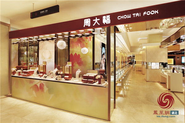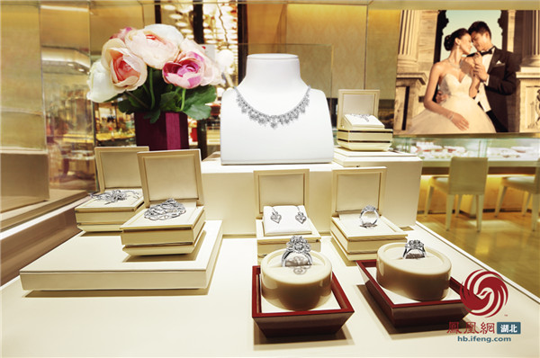 周大福武汉中心百货婚嫁专区珠宝店的精致珠宝展柜