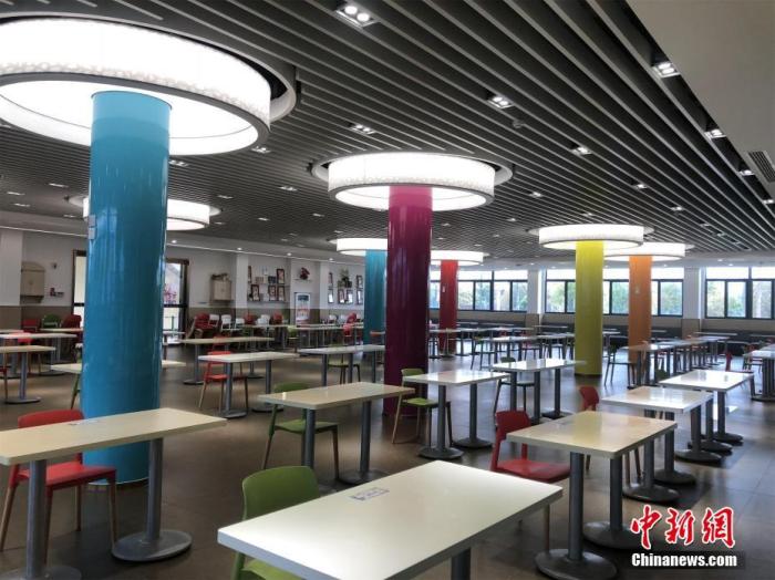 在园区入口,员工需经过装有红外测温仪的消毒通道;在完成体温登记、手部消毒后进入车间;平时可容纳300人同时就餐的员工餐厅,已被改造成单人单桌形式,员工分批用餐。