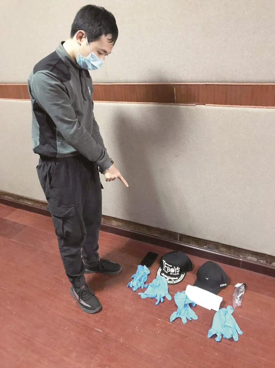 民警随后在仙桃市某宾馆查获蓝色橡胶手套、伪装用的平光眼镜、口罩、两把水果刀等作案工具。