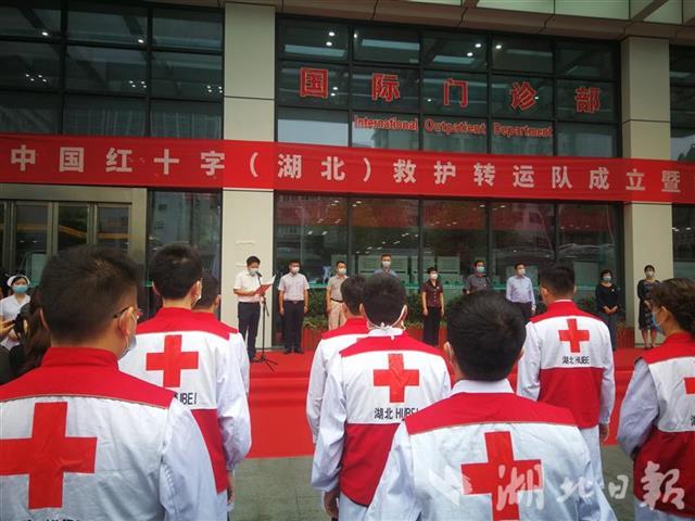 湖北日报讯(记者杨麟、通讯员涂文涛)“我志愿加入中国红十字湖北救护转运队,守护健康,拯救生命。”6月22日上午,华中科技大学同济医学院附属协和医院门诊大楼前,崭新的负压救护车整装待发,20余名志愿者举起右手庄严宣誓。中国红十字湖北救护转运队当日在协和医院成立。