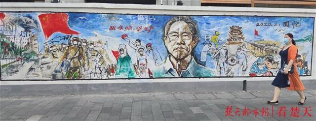 刚毅的眼神,力挽狂澜的风采,9月8日,以钟南山院士为主题的抗疫英雄宣传画,出现在武汉市江汉区中山大道,格外引人注目。这幅长卷壁画表达了湖北武汉人民对“共和国勋章”获得者钟南山的崇敬,表达着对抗疫英雄的谢意。 楚天都市报记者 李辉 通讯员 李长林 摄