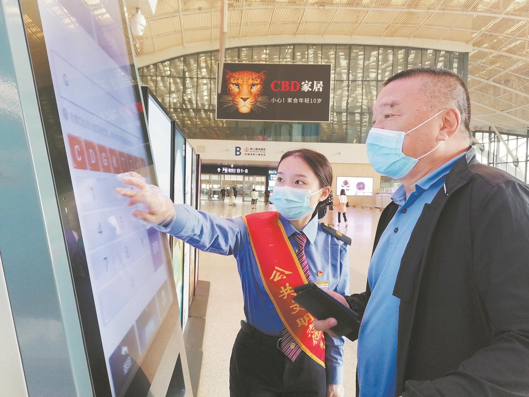 武汉站工作人员引导旅客乘车