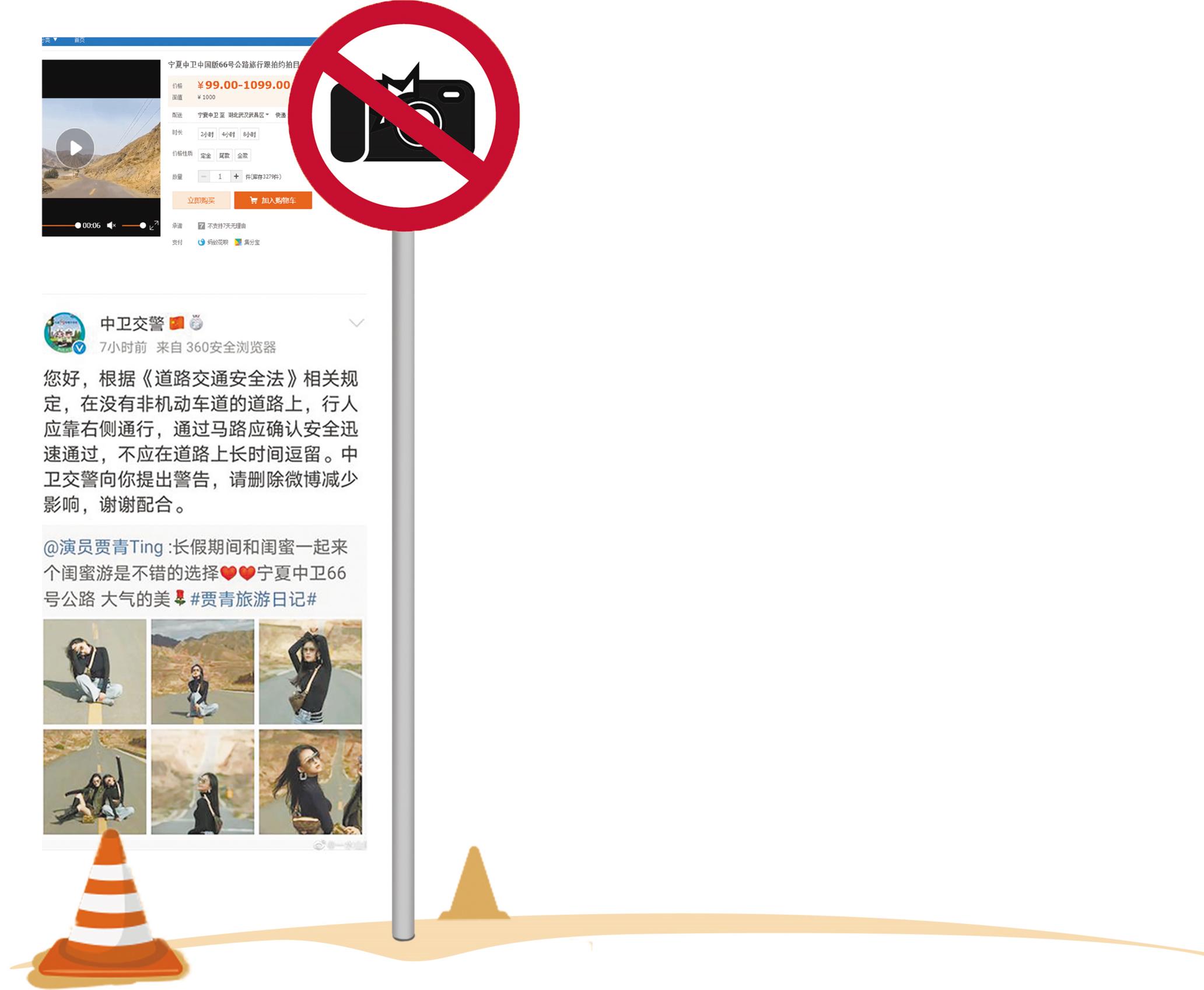 坐在马路中间,摆出各种造型,身后是萧瑟的荒原,宛如置身于美国西部的66号公路。10月7日,青年演员贾青在微博上发布一组照片,并夸赞“宁夏中卫66号公路大气的美”。没想到,两天后中卫交警喊话,要求贾青删除微博减少影响,此事一度上了热搜。贾青之后删除微博并致歉。