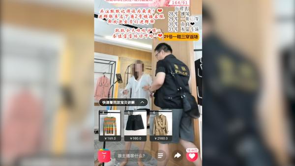 上一秒还在直播展示服装,下一秒主播就被警察抓获。