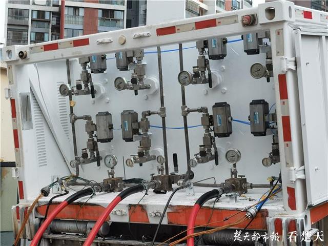 今日上午,楚天都市报记者来到该气站看到,工作人员正在给车辆加气,该气站旁,还有另一座气站和加油站。记者注意到,事发气站的角落里,停放着一辆天然气槽车,车上还架着几个气罐,一旁的提示牌显示“燃气重地 严禁烟火”,抬眼四望,在该气站附近分布着不少小区居民楼。