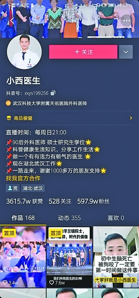 小西医生的短视频内容大部分围绕着各类科普。他经常给粉丝讲自己接诊的病人的故事,提醒大家注意避开健康误区,科普生动易懂。