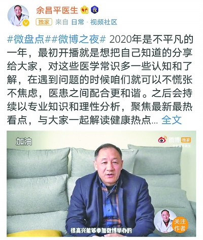现在,余医生在微博、抖音等平台继续更新科普,“流感与普通感冒有什么区别?”“哪些养生建议是假的?”“冬天喝酒能暖身吗?”“流鼻血要仰头吗?”话题与普通市民生活很贴近,常有粉丝在评论里夸他“亲切”。