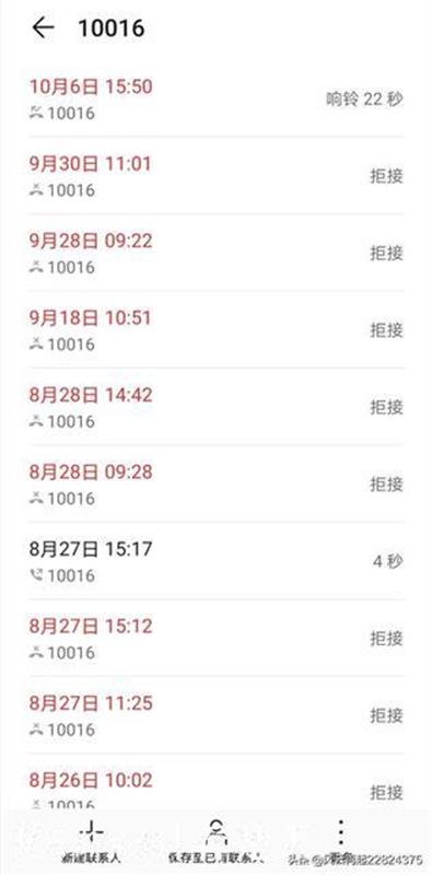 “我都被联通的营销号打了好多次,曾经1天之内就被骚扰三次。有时第一通拒接,仅隔5分钟又再打来。”网友“风云再起22824375”也分享了自己被骚扰的经历,从8月26日到10月6日,他一共接到了10次10016电话骚扰,其中接了2次,其余8次均拒接。