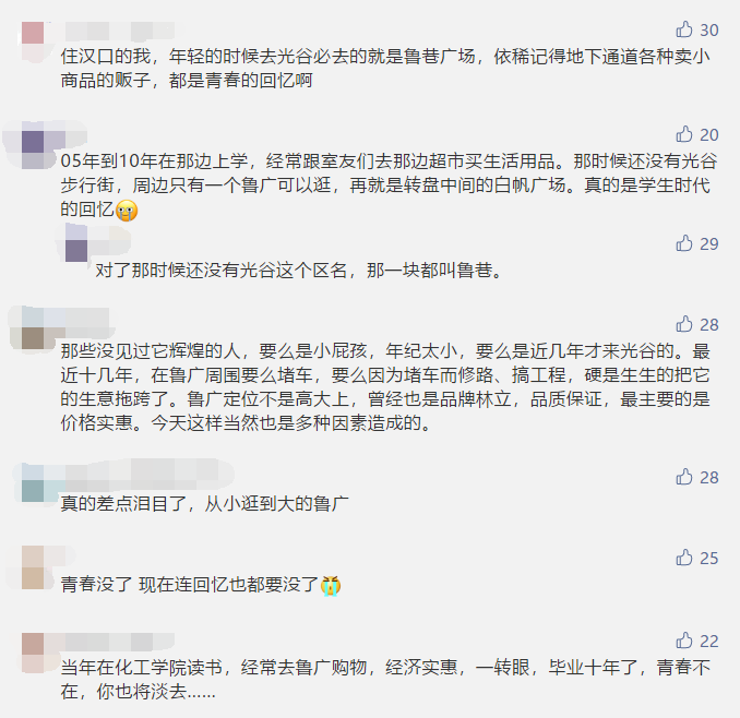 很多人发出惋惜等感叹:“几代光谷学生的青春回忆啊!”“鲁广是上一辈人的情节”……