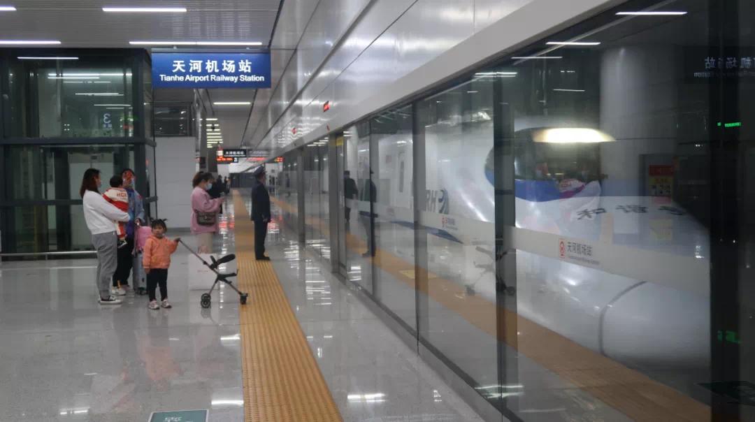 今天,来自荆州的陈女士是首次搭乘此次新增空铁班列,过去,她坐动车到汉口需要一个半小时,然后从汉口站转车到天河机场,加在一起2小时40分钟左右。现在全程只需要1个小时40分钟,而且不用来回拎行李,车站的升降电梯直达天河机场。机场和车站还实现了空铁联动,为晚点旅客开启绿色通道。