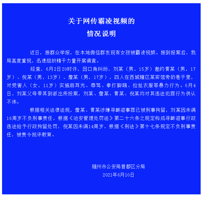 近日,接群众举报,在本地微信群发现有女孩被霸凌视频。接到报案后,我局高度重视,迅速组织精干力量开展调查。