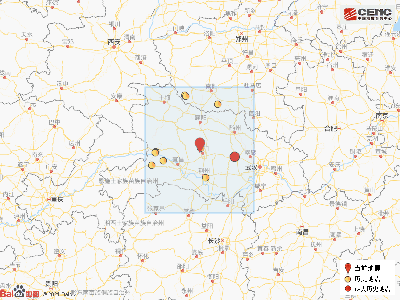 历史地震:根据中国地震台网速报目录,震中周边200公里内近5年来发生3级以上地震共13次,最大地震是2019年12月26日在湖北孝感市应城市发生的4.9级地震(距离本次震中128公里),历史地震分布如图。