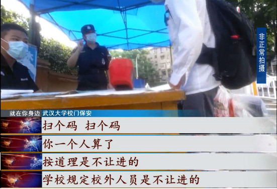 一番沟通,保安看记者一个人,让记者扫了大数据通行二维码后,顺利进入校园。