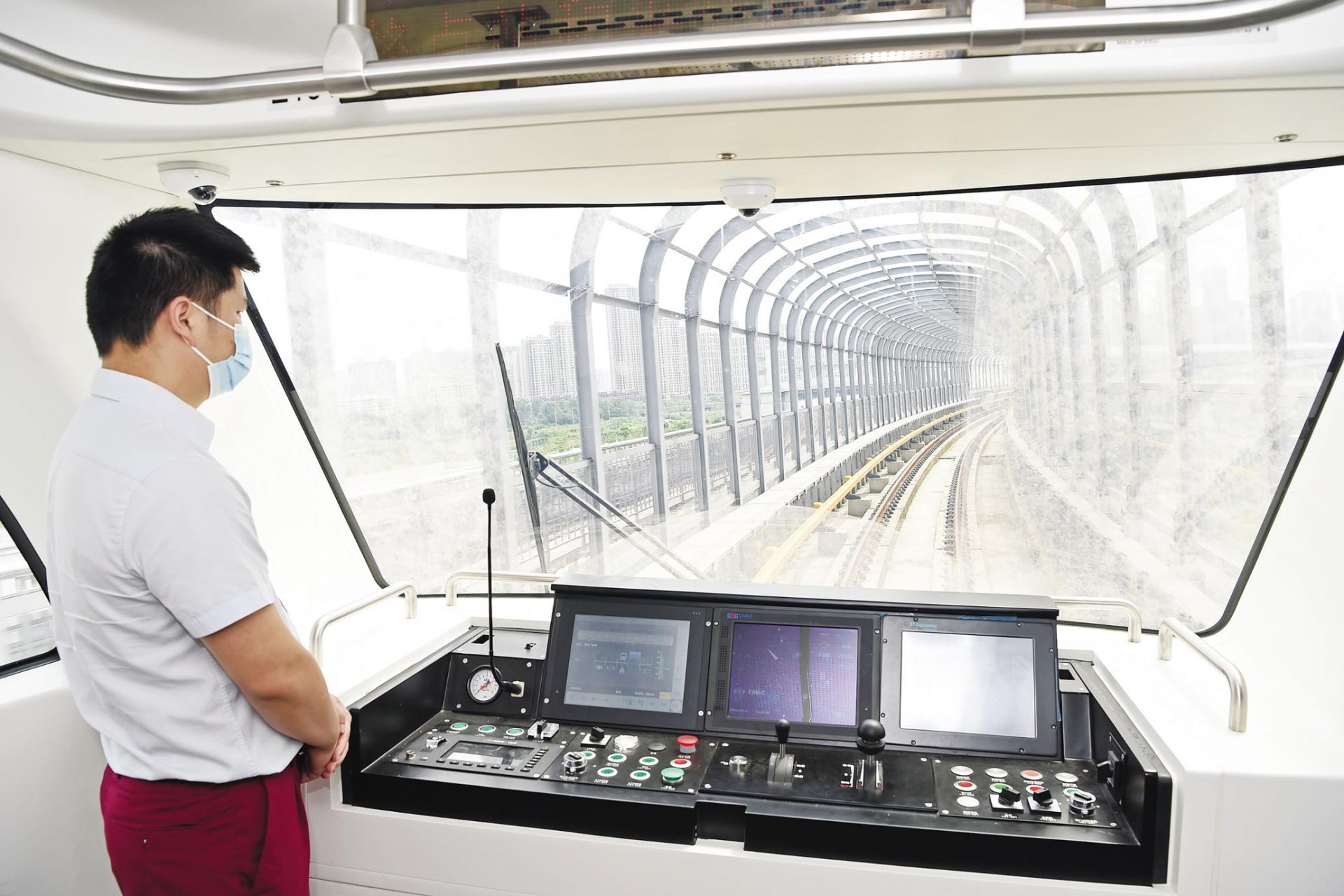 地铁5号线的全自动驾驶列车,采用具有完全自主知识产权的国产FAO系统,可实现目前世界上最高级别(GoA4)的自动运行。调试完成后,武汉地铁5号线能够按计划自动完成远程唤醒、上电自检、发车离站、到站开闭车门、无人折返、运营后回库休眠、自动洗车等全自动场景。武汉地铁5号线起于中医药大学站,止于武汉火车站,线路全长33.57公里,全线设站25座,其中换乘站10座。(湖北日报全媒记者 李溪 通讯员 刘丹丹 袁永华 实习生 张妍 摄)