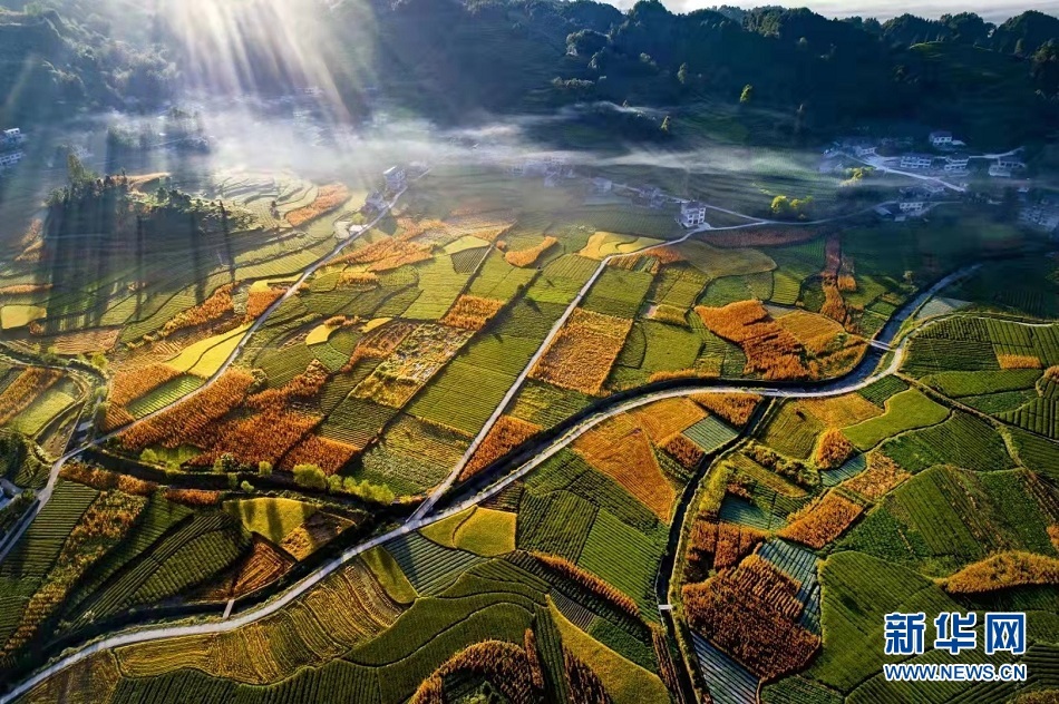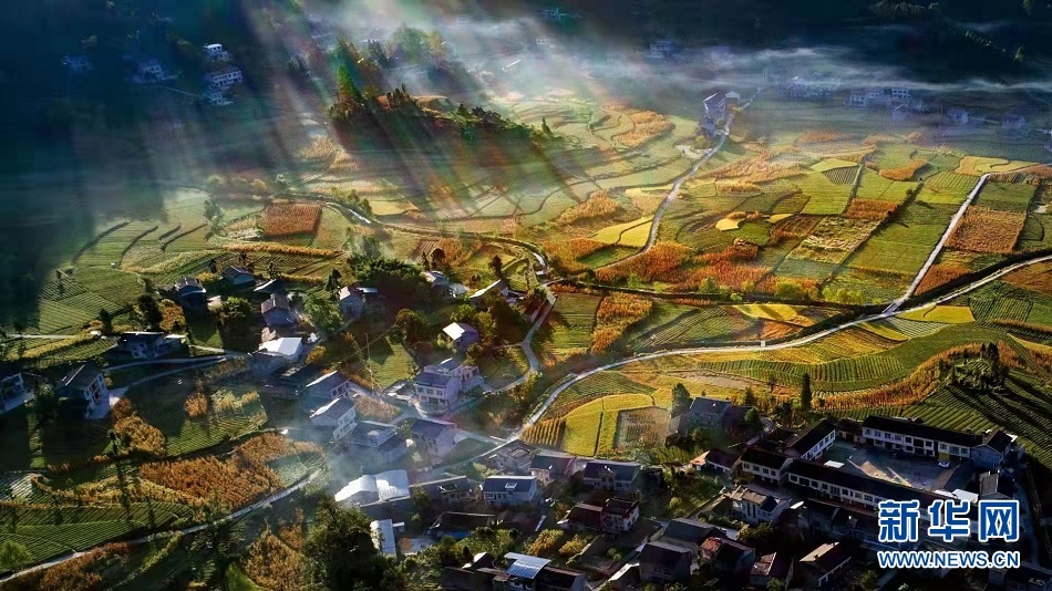 金秋时节,湖北省恩施土家族苗族自治州鹤峰县走马镇铺金叠翠,稻茶飘香。走马镇有鹤峰“粮仓”之称,境内有十多万亩优质茶园,又有“恩施茶叶第一镇”之誉。(陈平章、唐平波)