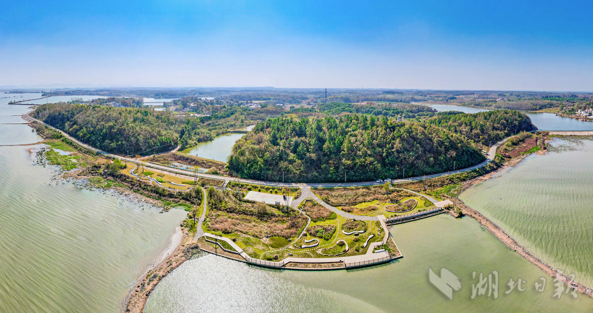 11月16日,航拍梁子湖环湖绿道特色景点九龙湾。近日,位于鄂州市梁子湖区的梁子湖环湖绿道一期基本建成。该绿道起点为涂家垴镇涂镇码头,终点为细屋金湾,全长16.8公里,呈带状分布,沿线设有9处特色景观。项目依托梁子湖自然、野趣的生态基础,整合周边村湾资源,形成具有滨湖生态、渔家风情、乡村旅游为特色的郊野绿道景观。目前,这条绿道正继续“沿湖”延伸,二期建设已经启动,将成为武汉、鄂州、黄石、咸宁等城市圈居民休闲出游的好去处。(湖北日报全媒记者 薛婷 通讯员 黄松 王年玉 摄)