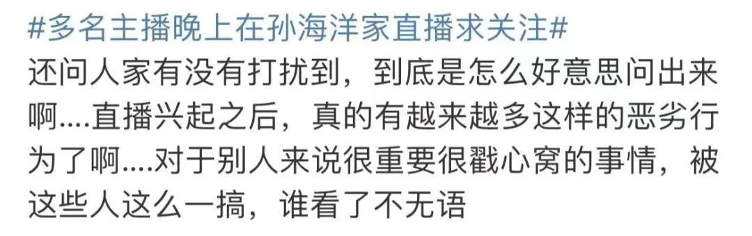 视频中,一男主播不断询问孙海洋,“我们没有打搅到你吧?”,孙海洋回答“没有”。