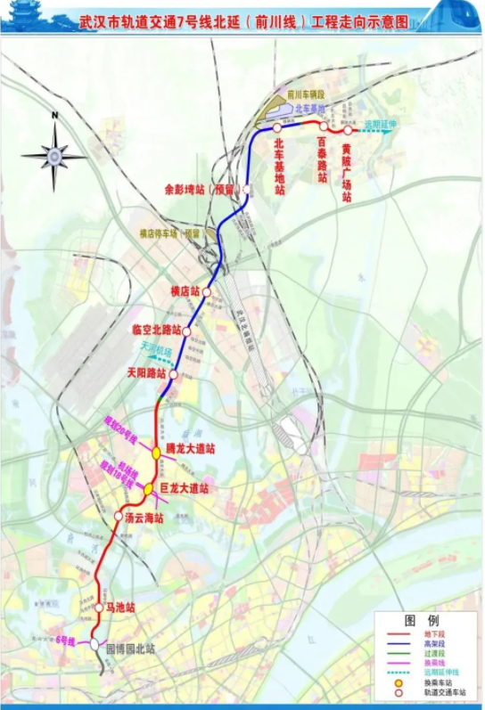 前川线从7号线园博园北站接入,止于黄陂广场站,全长36.44公里,采用地下与高架相结合方式,设站11座。