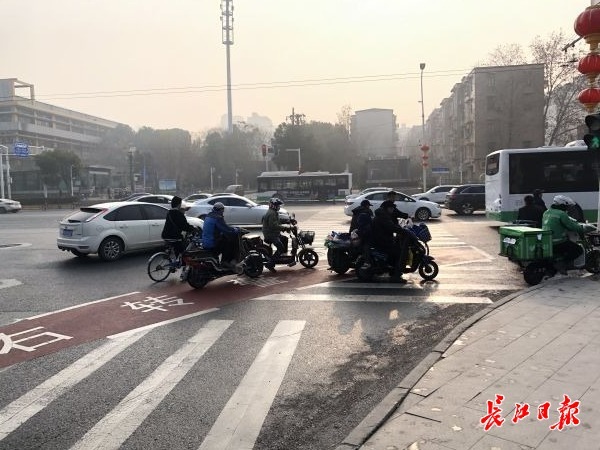 不过,长江日报记者近日探访多个路口发现,不少大型车辆仍然压越“右转警示区”行驶。行人和电动车任意穿梭,并未对该区域足够重视。在中北路与秦园东路路口,记者注意到,路面右转弯处虽施划有“右转警示区”,但由于右转方向无红绿灯,车辆右转时均不停车。此路口人多车多,尤其是快递小哥络绎不绝、穿行其间,每当有公交车或大型环卫车右转时,记者都对路口的快递小哥们捏一把汗。