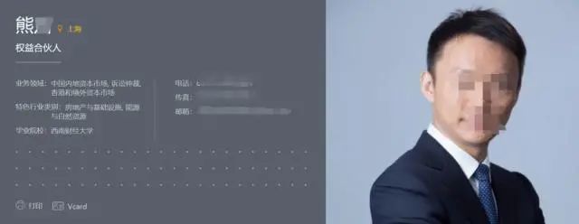中伦官网显示,熊某西南财经大学法学院法学学士、法学硕士,在加入中伦之前曾在金杜律师事务所担任律师。熊某2015年1月晋升为中伦非权益合伙人,2017年2月22日晋升为权益合伙人。