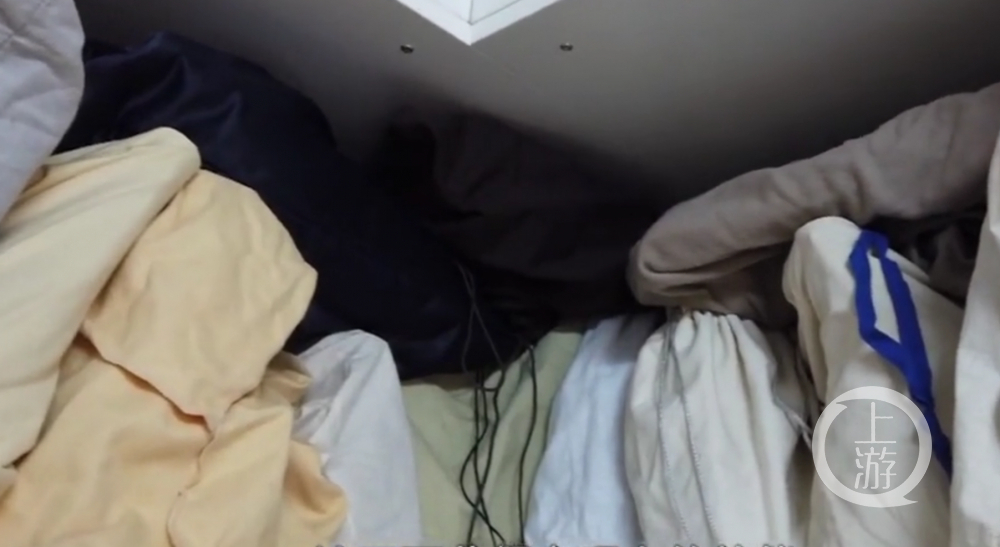 ▲王丽家藏匿的各类奢侈品只能装在防尘袋里堆放在角落。图片来源/视频截图