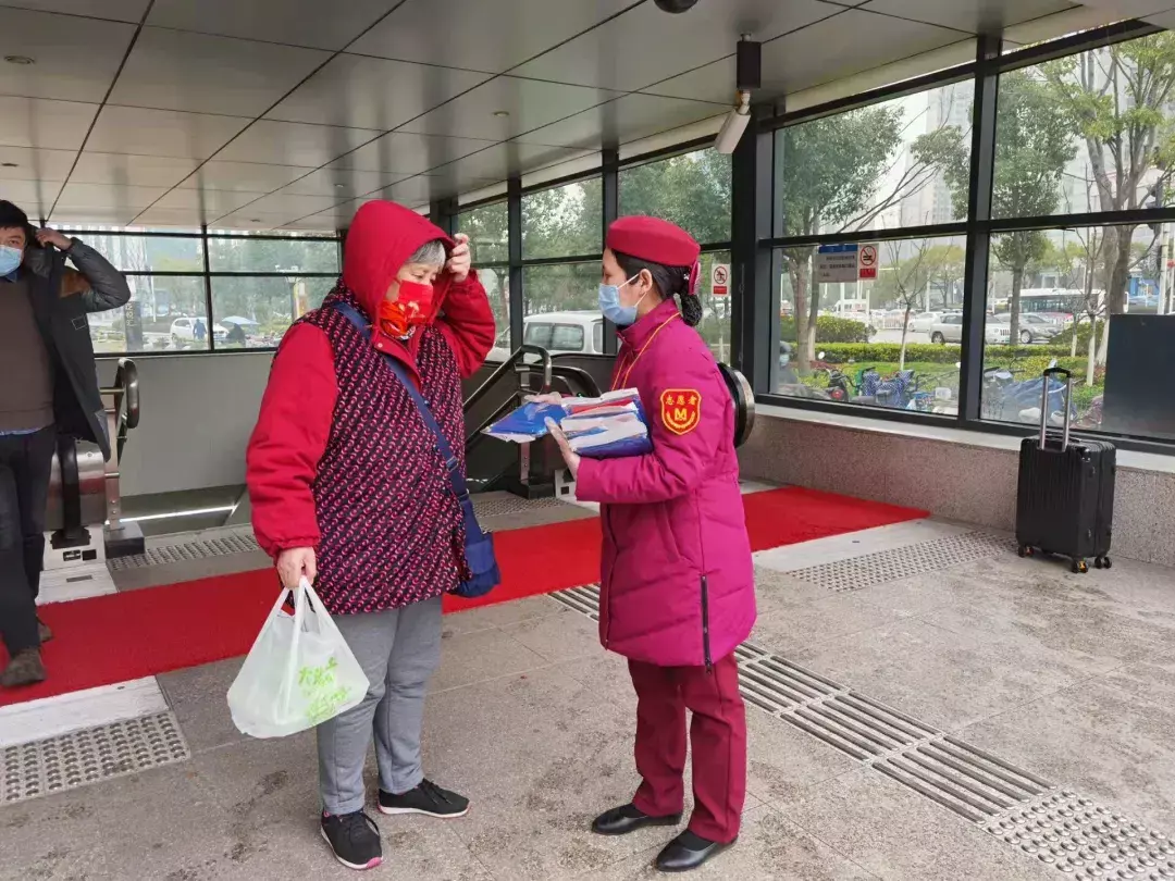 在4、7号线武昌火车站等地铁枢纽站,工作人员加大出入口巡查频次,及时清理水渍,特别关注拎行李箱的乘客,并提供帮助。