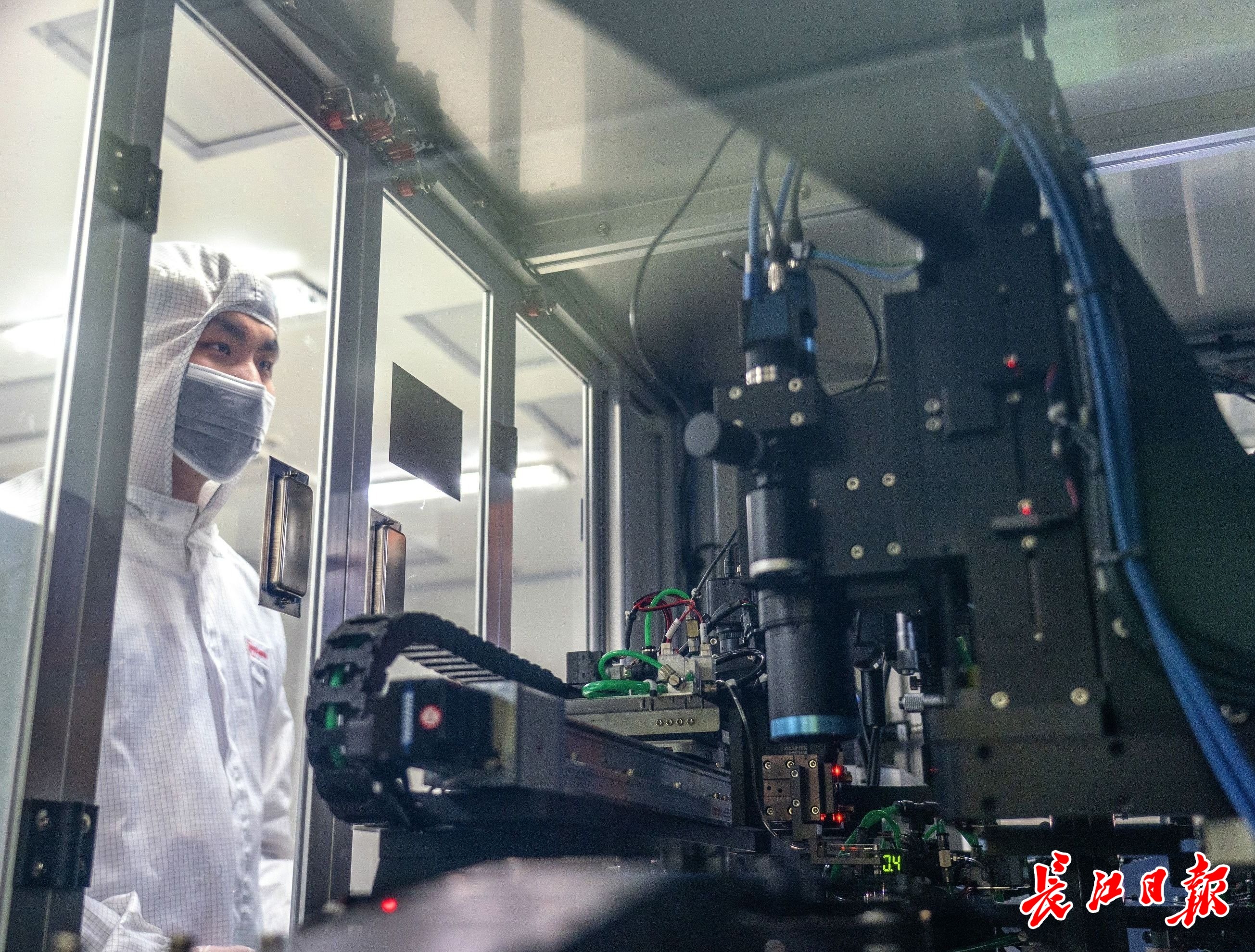 3月13日,长江日报记者在武汉云岭光电有限公司看到,4000余平方米的芯片无尘车间内,技术人员身着防尘服,正在生产芯片晶圆。