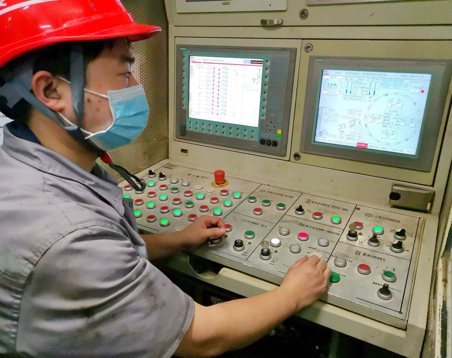 施工人员操作盾构机。通讯员袁永华 摄