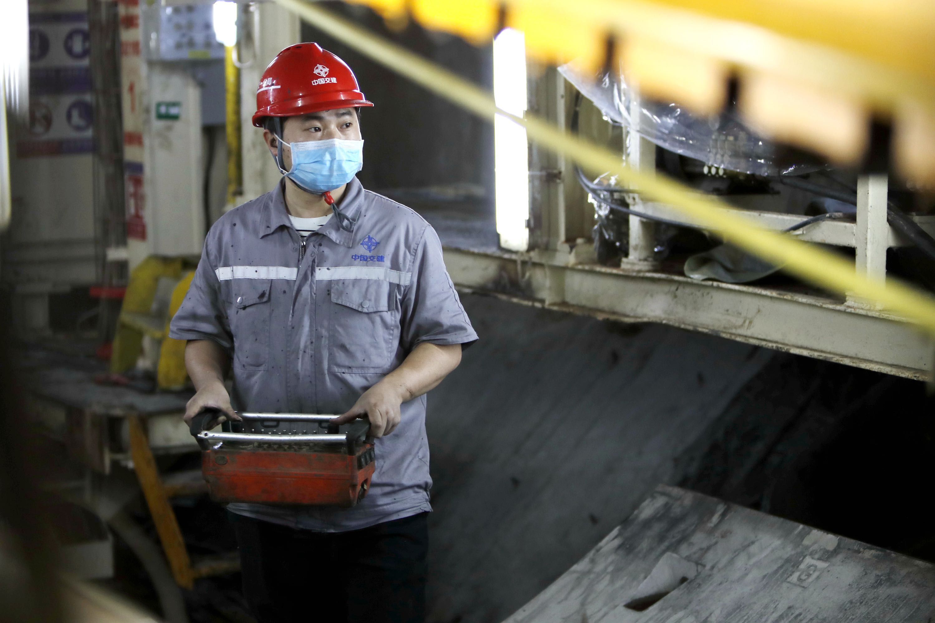 施工人员在盾构机工作。通讯员袁永华 摄