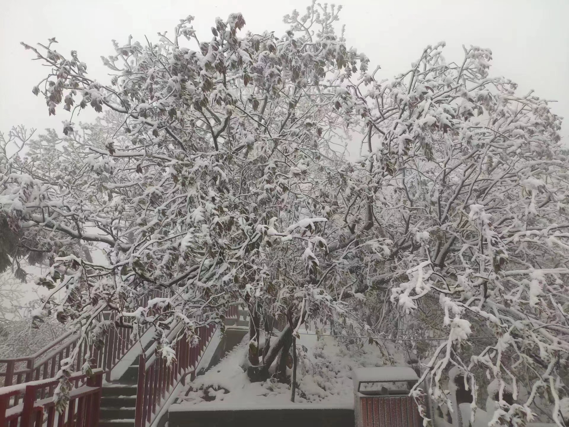 从4月15日开始,十堰迎来有一次强降温降雨天气过程,武当山景区也由此产生了一轮降雪,大部地区日平均气温将累计下降6℃~8℃,金顶区域地区降温达10℃以上。春天正是生机勃发的时节,一场春雪“无约而至”悄悄降临为武当的春天增添了一丝纯白的浪漫。许多网友都惊呼还来不及感受春日美景,又遇罕见的四月飘雪。