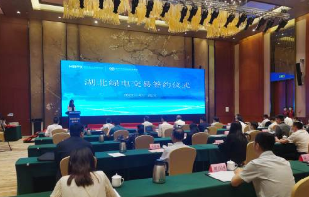 在湖北省内首场绿色电力交易签约仪式现场,来自省内的7家发电企业、8家电力用户代表签署绿色电力交易协议,并获颁由湖北电力交易中心、湖北碳排放权交易中心共同认证的“绿色电力交易凭证”。